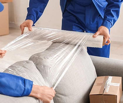 Le mobilier est sécurisé via des couvertures de protection épaisses et des housses sur mesure. Une attention particulière est portée au capitonnage des angles vifs avec des renforts dédiés.